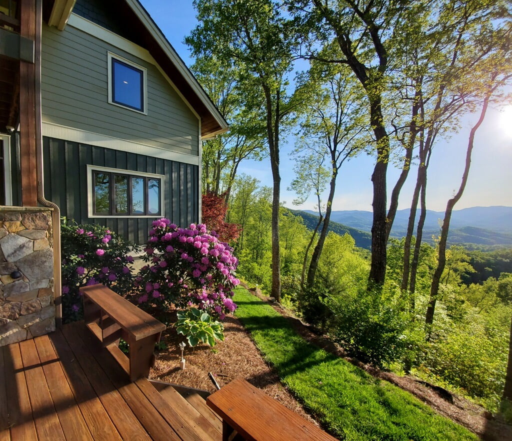 Buttercup Haven looked especially colorful this Spring. The annual clean up and mulching took place on schedule. The trees and shrubs planted in the past few years provided a striking foreground to the home and the mountains.