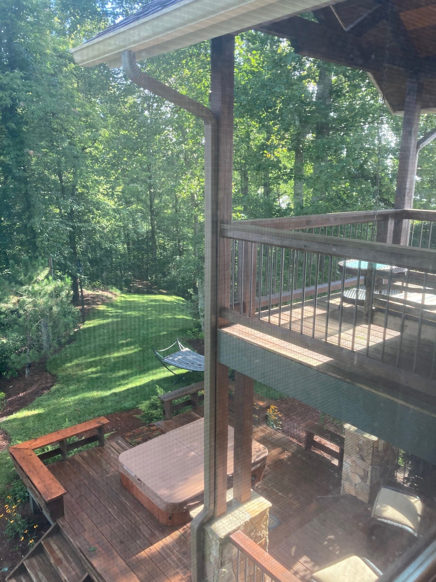 - View of the north decks, hot tub, and lawn
